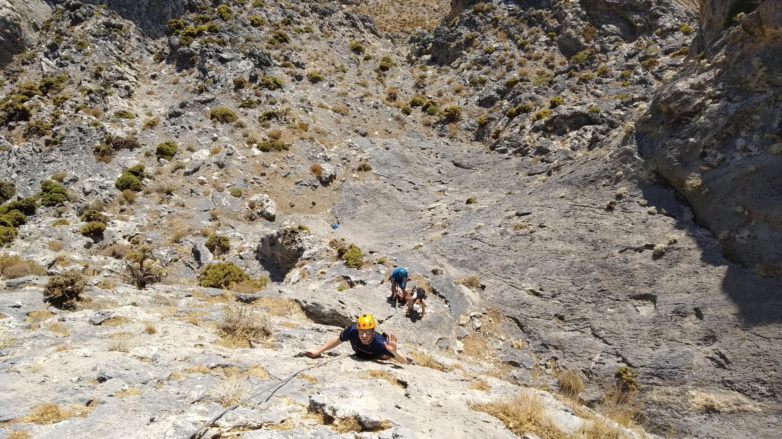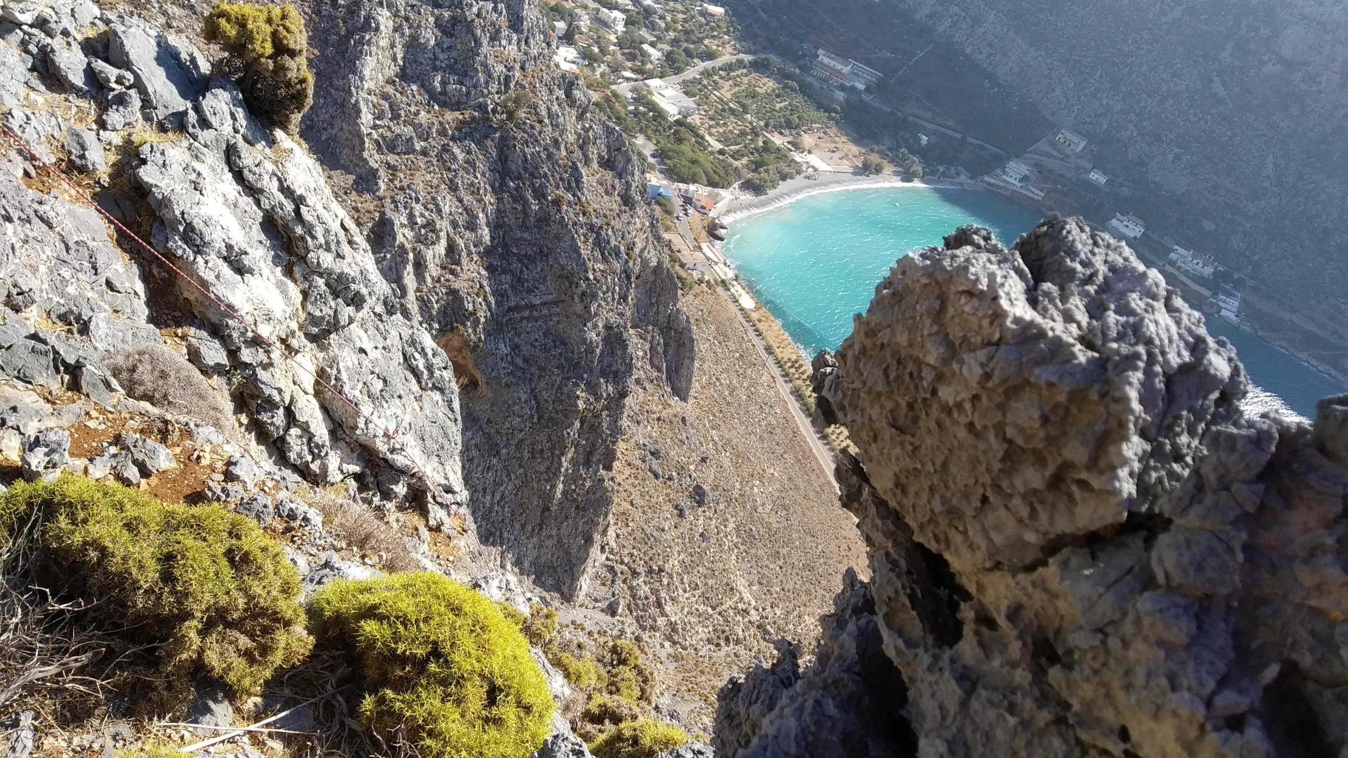Da war er also – der letzte Klettertag. Eigentlich war nochmal eine Mehrseiltour geplant, allerdings haben wir uns alle nicht komplett fit geführt für die Strapazen. Deshalb kurze Planänderung beim Frühstück. Wir haben uns im Führer für das Gebiet Vasillissa über der Pirate Bay entschieden. Den richtigen Anstieg haben wir nicht gefunden. Irgendwann waren wir trotzdem am Felsen. Dieser Anstieg war wirklich der krasseste, den ich bisher hatte. Teilweise ging es ungesichert auf 3er Routen bergauf. Dank dem Anstieg bin ich auch mit meiner Höhenangst voll auf meine Kosten gekommen. Dafür hatte ich sie am Felsen dieses Jahr super unter Kontrolle. Tagesziel war heute eine 6b.