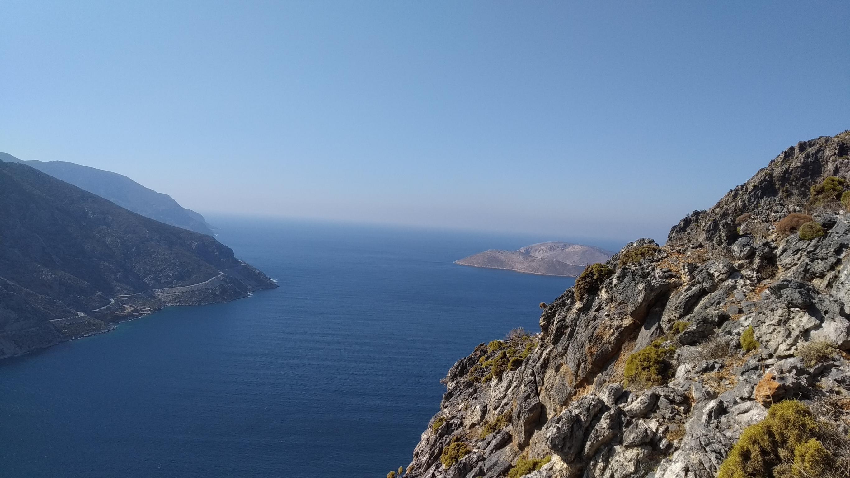Unseren vorletzten Klettertag sind wir mit einem kleinem Boot nach Telendos übergesetzt. Dort haben wir den Sektor Miltiadis unsicher gemacht. Die Routen waren spitze. Allerdings hätte man sich jeweils die letzten 10 m sparen können. Dort war immer laufen angesagt. Dafür war der Ausblick echt gut. Der Anstieg zu dem Sektor erfolgte über Irox (Weiterfahrt per Boot). Für den Heimweg haben wir uns allerdings ohne Boot entschieden. Dementsprechend sind wir eine gute Stunde über die Insel bis zum Hafen gewandert.