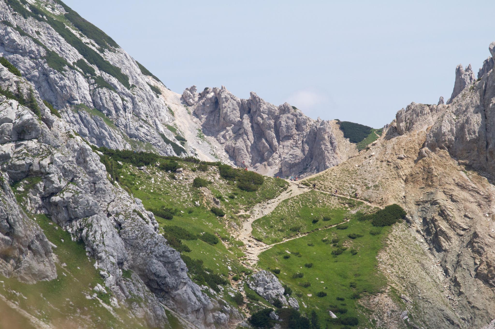 Los ging es um 9:00 Uhr in der früh. Nach gut drei Stunden auf dem normalen Wanderweg, der uns auch zum Triglav geführt hätte sind wir zu einer kleinen Bank gekommen. Von dort ging es sehr steil einen sehr schmalen Pfad bis zum Gipfel. Die letzten 1,2 km haben uns einige Strapazen gekostet, aber der Blick auf dem Gipfel war wunderschön und das Wetter mitgespielt.