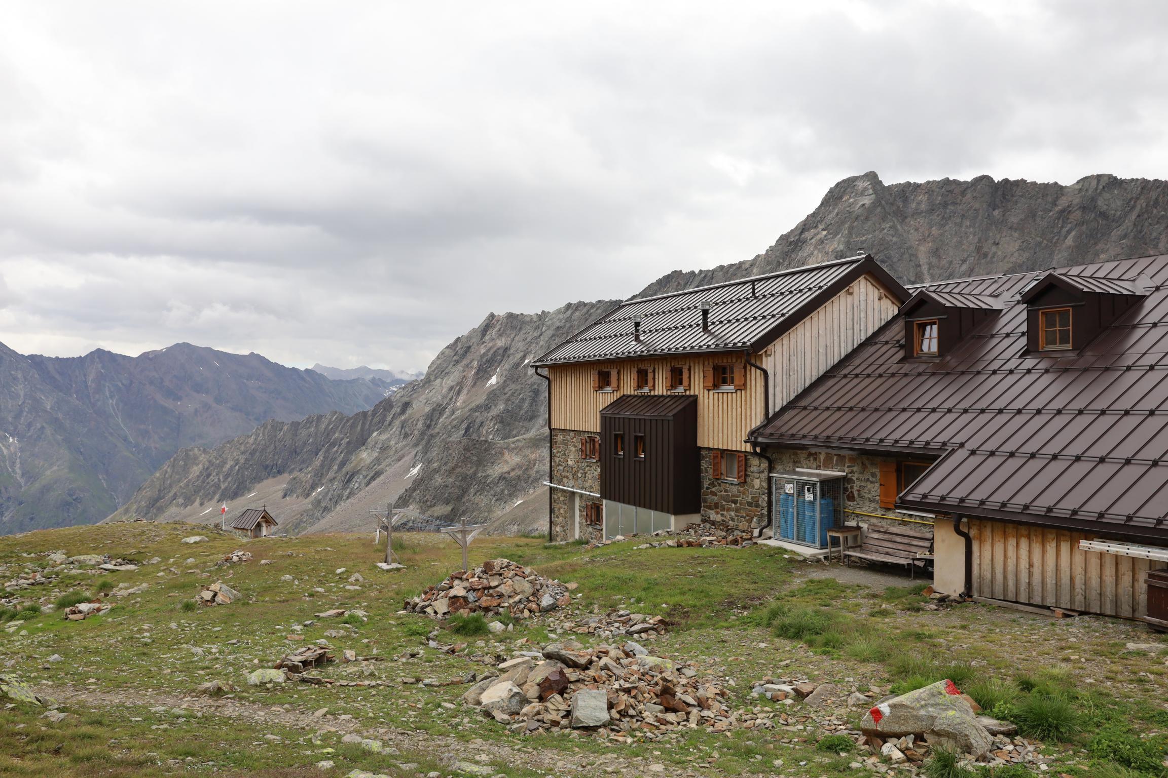 Am 15.08.19 ging es zunächst mit dem Zug von München über Innsbruck nach Imst-Pitztal. Dort sind wir mit dem Bus 4204 nach Plangeross ins Pitztal weiter gefahren. Die Reise verlief ohne Probleme und nach 4,5 Stunden konnten wir gegen 12:00 Uhr loslaufen. Der erste Abschnitt unserer Wanderung ging zur Kaunergrathütte, welche wir nach 3,5 Stunden erreicht haben. Die 8 Kilometer sind im ersten und letzten Abschnitt besonders knackig, da der Weg ziemlich steil ist. Zwischendurch läuft man über Almen und Geröllfelder. Die letzte Stunde hat man die Hütte schon vor Augen und kann sich die Kräfte einteilen. Bei angenehmen 18 °C und Sonnenschein haben wir es uns bequem gemacht. Leider waren wir nicht im Haupthaus untergebracht, sondern im Notlager. Gemütlich war es trotzdem 🙂 Als wir gegen 22:00 Uhr ins Bett gegangen sind, ist die Temperatur mittlerweile auf 2 °C gefallen und es hat leichter Schneefall eingesetzt.