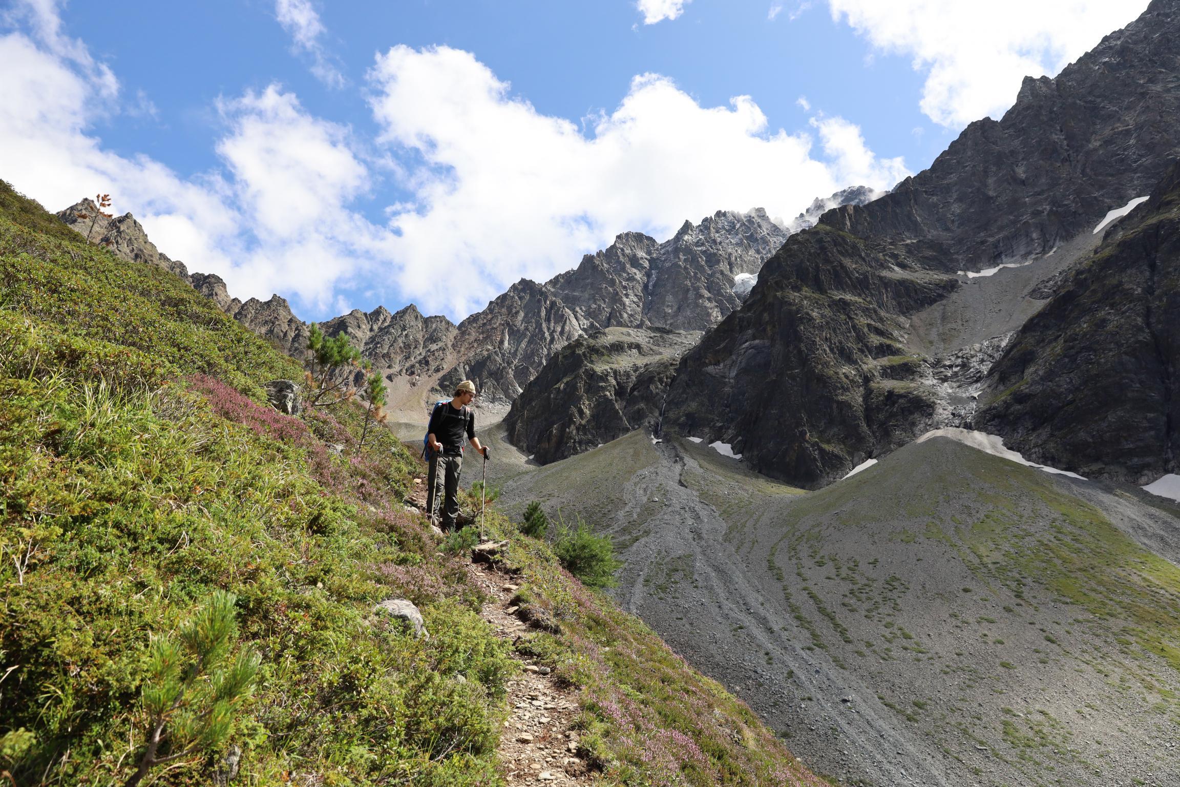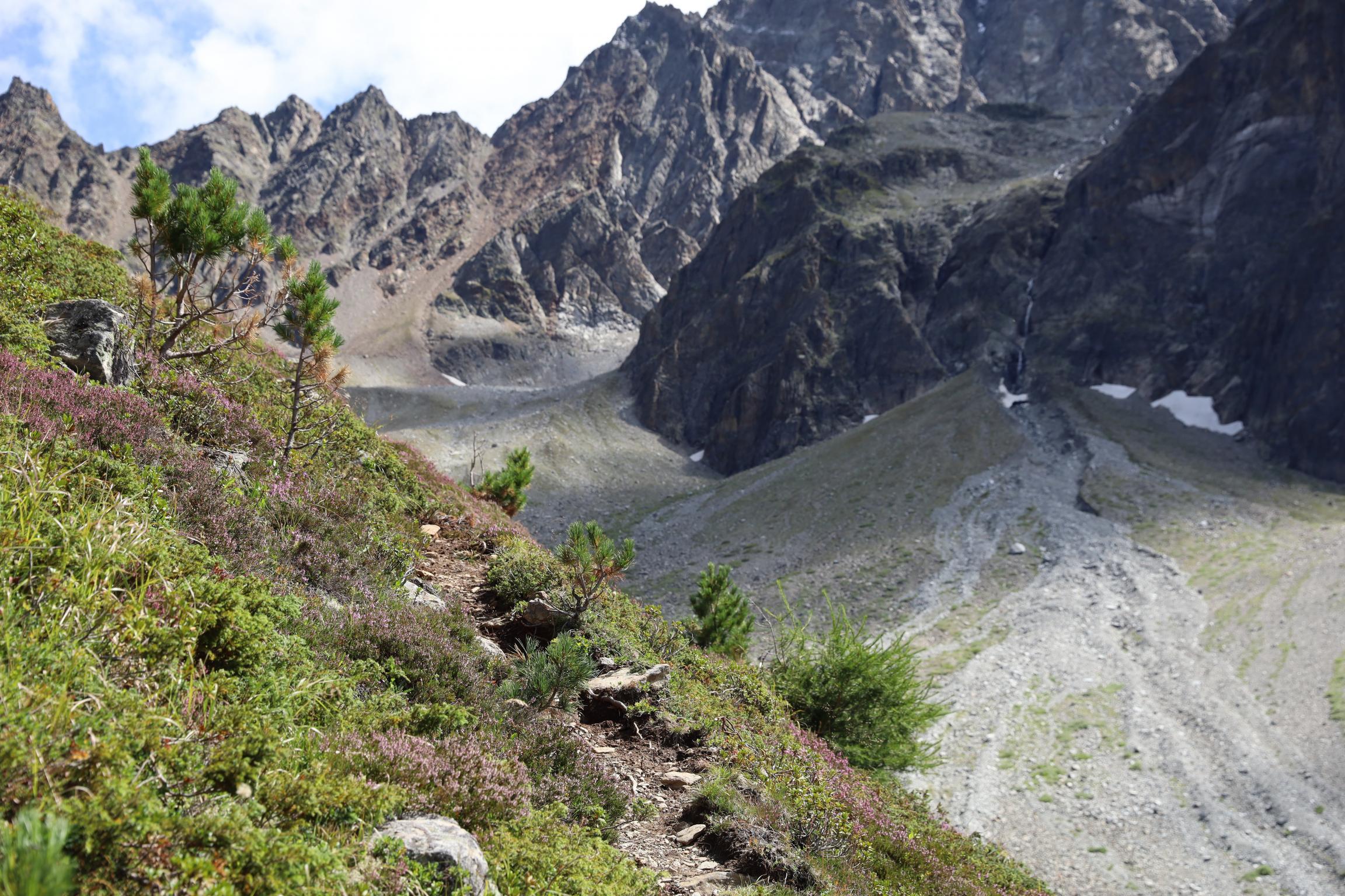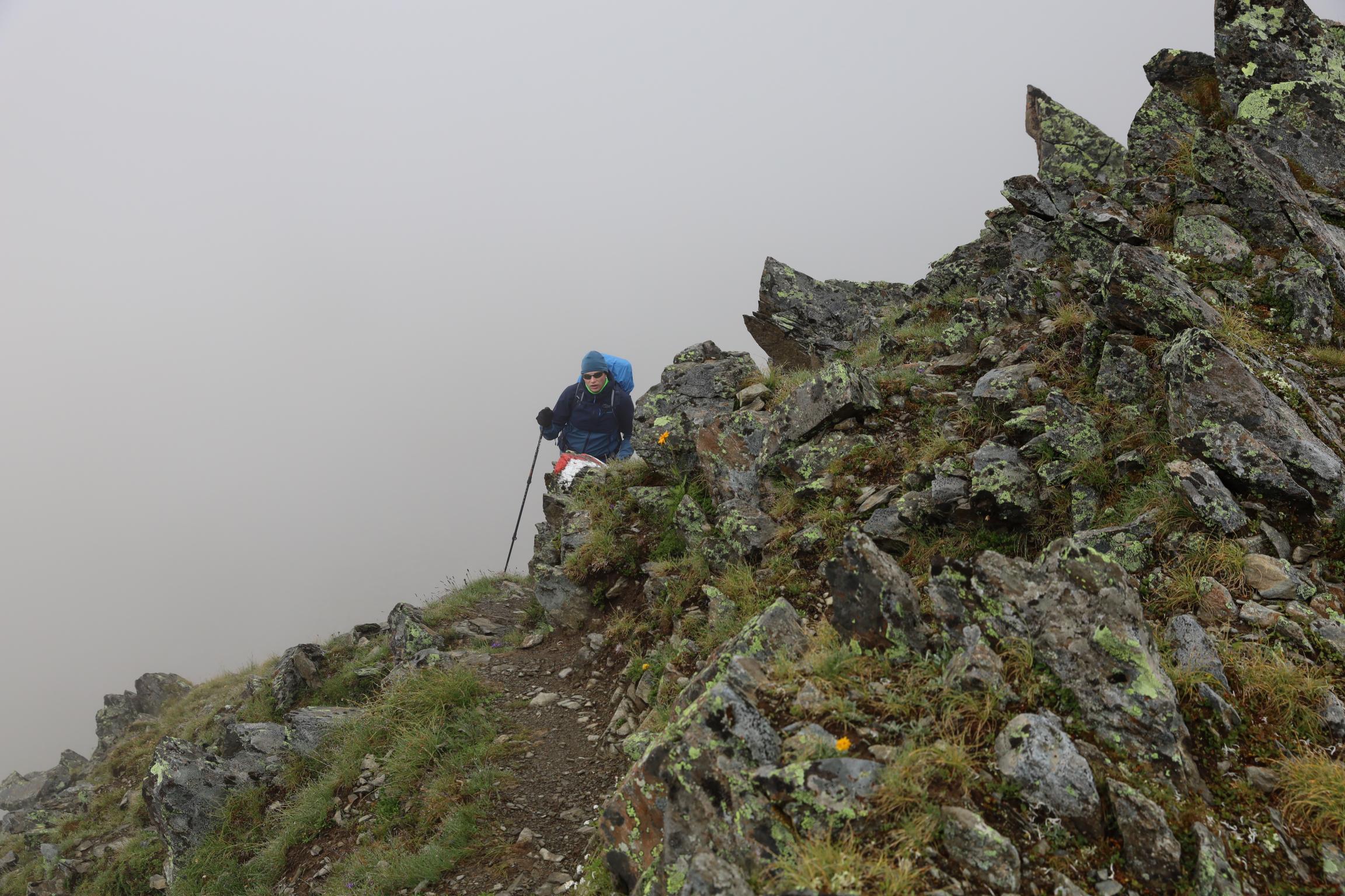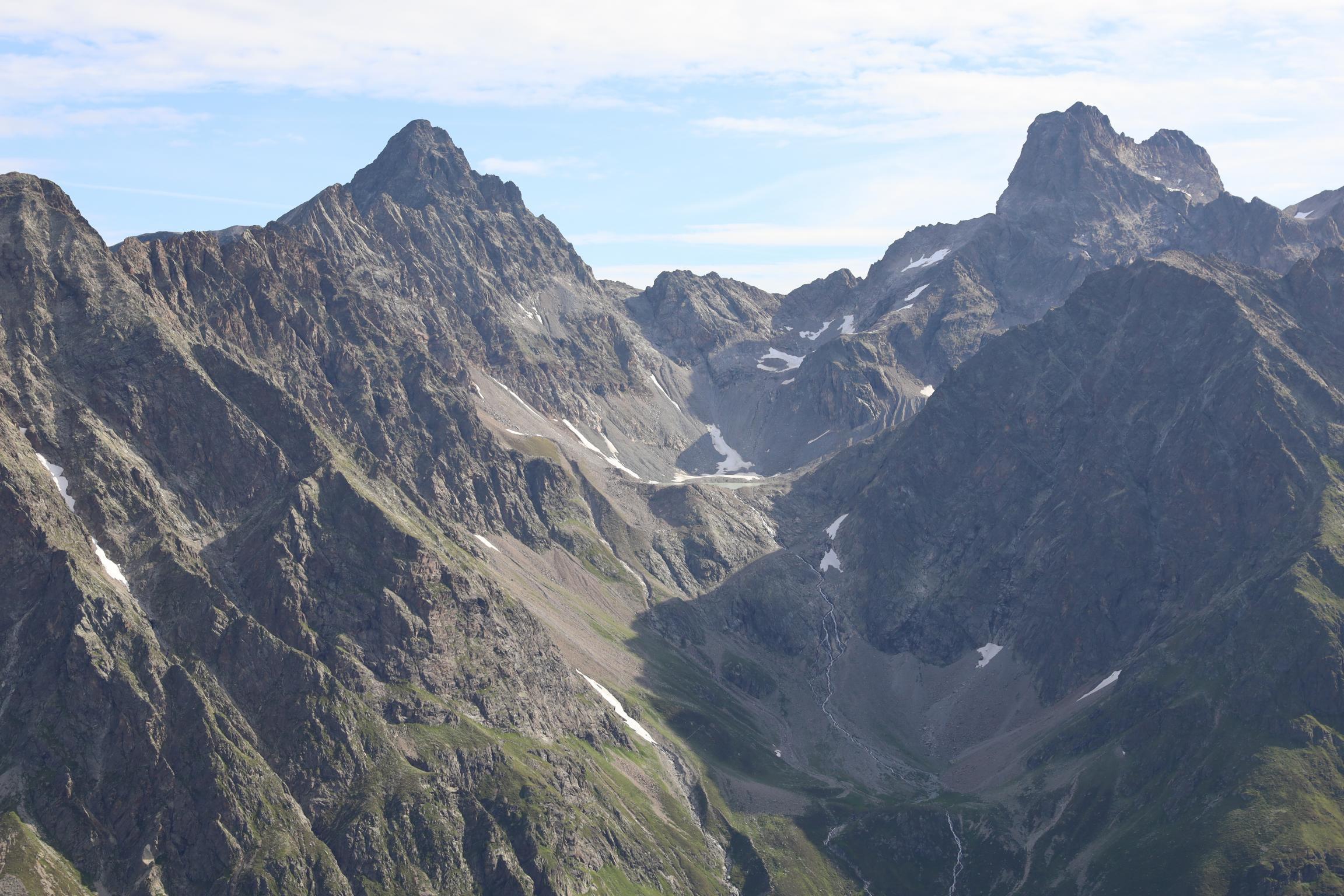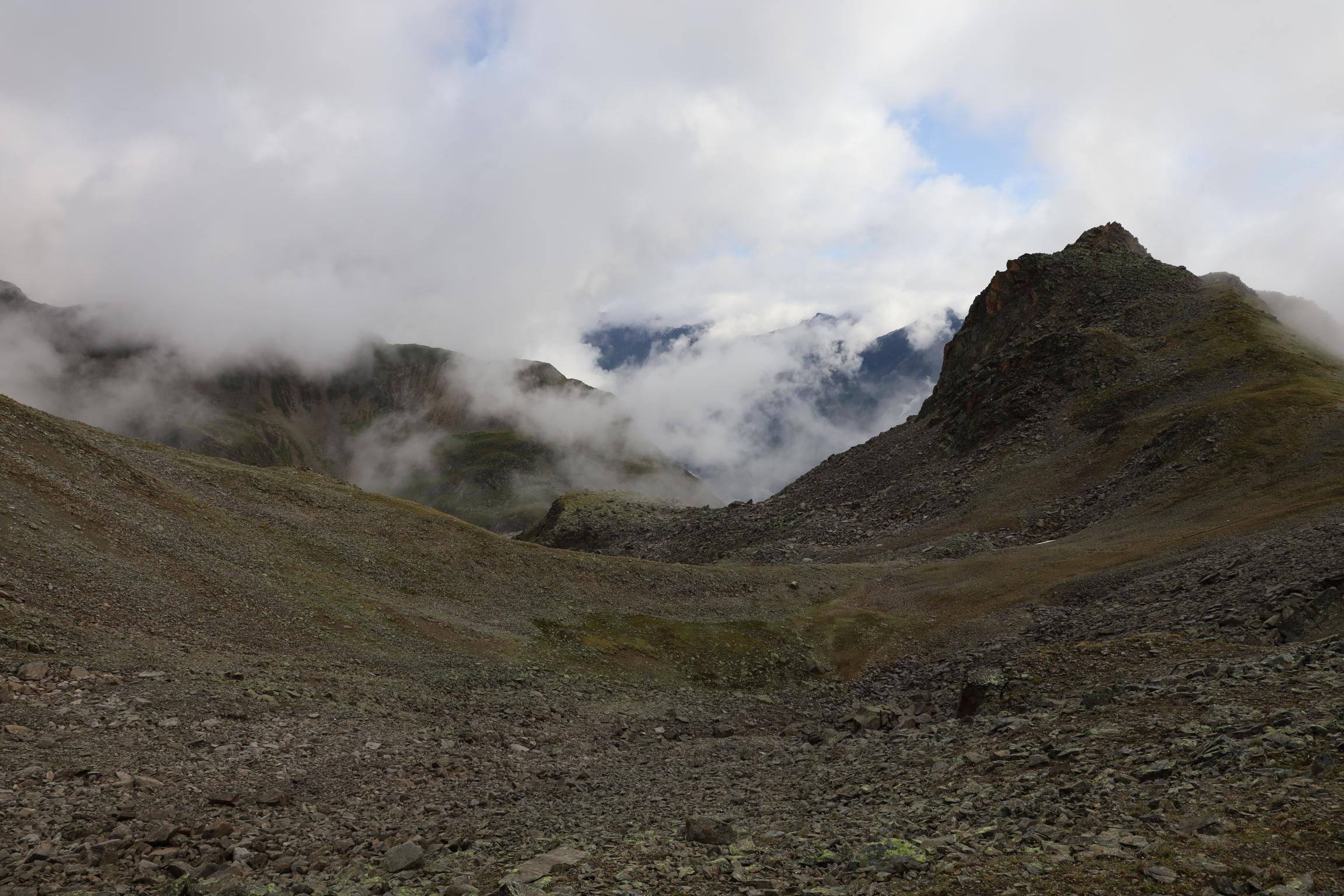 Am 16.08.19 sind wir um 06:30 Uhr aufgestanden bei 0 °C. Ich bin die Nacht jede Stunde wach geworden, weil mir immer die Decke weggerutscht ist und mich die Kälte geweckt hat. Um 08:30 Uhr sind wir nach dem Frühstück losgelaufen. Zunächst ging es nochmal gute 100 Höhenmeter bergauf über einen Steilhang zum Steinbockjoch. Dieser Übergang markiert mit 2940 m den höchsten Punkt auf unserer Tour. Der Weg (schwarze alpine Route) führte uns über Bäche, Bachläufe und Geröllfelder weiter zum Mittelberglesee auf 2450 m. Dieser ist auch von Trenkwald über eine rote Route erreichbar. Vom See haben wir das mächtige Verpeilmassiv gesehen und wussten am Verpeiljoch (2830 m) wartet noch jede Menge Kletterei auf uns. Der letzte Anstieg vor dem Joch war nochmal eine richtige Kraftprobe. Als Weg kann man ihn eigentlich nicht bezeichnen. Vom Joch aus hat man die Verpeilhütte in der Ferne gesehen. Allerdings war diese noch gute 2,5 Stunden entfernt. Die nächsten 300 m vom Verpeiljoch aus sind mit Tritten, Leitern und Seilen gesichert. Ich bin mit meiner Höhenangst gut auf meine Kosten gekommen. Allerdings ist die Route vorbildlich gesichert. Ein Klettersteigset ist nicht unbedingt erforderlich! Unterhalb der Verpeilspitze konnte man noch einen Blick auf den Gletscher bekommen. Zumindest konnte man vermuten, was alles mal Gletscher war – leider ist kaum noch was übrig! Um 15:30 Uhr sind wir nach 7 Stunden Wanderung auf der Verpeilhütte angekommen. Der Weg wurde offizell mit 6 Stunden angegeben, wir haben allerdings viele kleine Pausen gemacht und uns an der Landschaft erfreut. Auf der Hütte haben wir die letzten Sonnenstrahlen genossen und uns erstmal frisch gemacht. Nach dem Abendessen um 18:30 Uhr wurde Skat gespielt. Ich bin kurz vor der Nachruhe nochmal ins freie gegangen und habe die Sterne beobachtet. Durch die Perseiden konnte man auch noch die ein oder andere Sternschnuppe sehen.